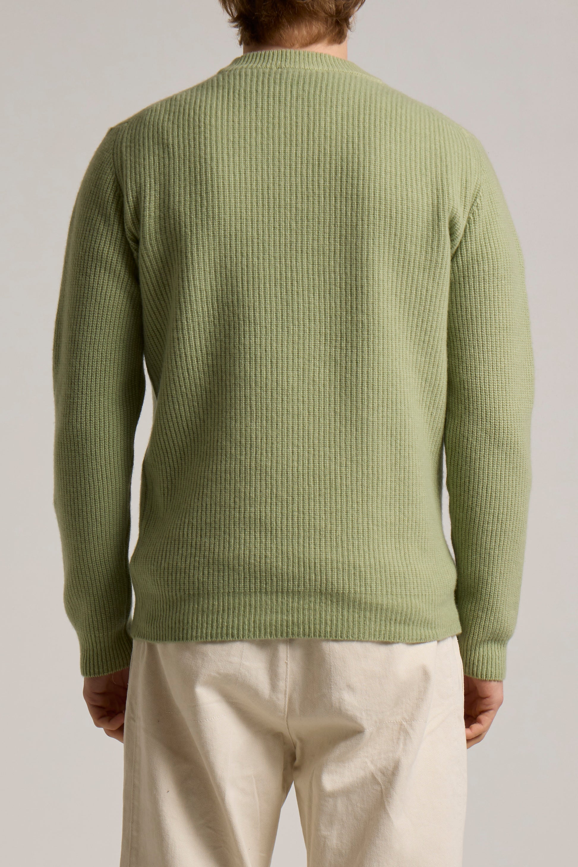 19,5 Micron Extrafine Virgin Merino's Wool, vintage dyed fisherman ribbed crew neck sweater, 1x1 finishing.