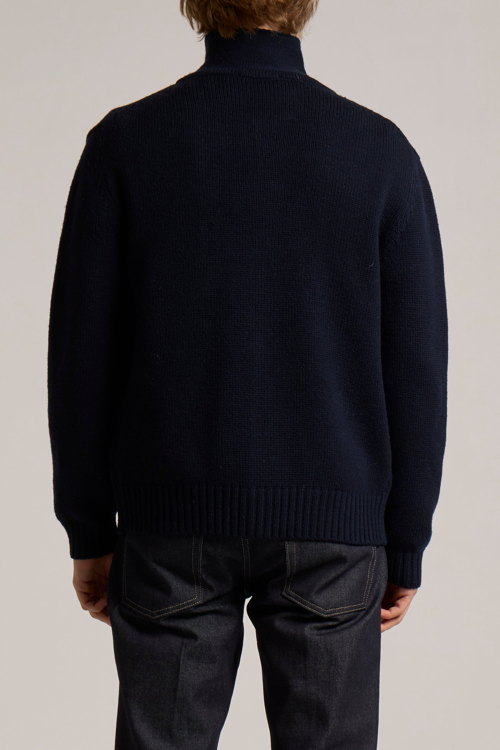 Extra twisted Merino's Wool, middle weight single jersey, links finished polo neck shirt with pockets, tone on tone buttons and 2x1 ribbed cuffs and waistband.