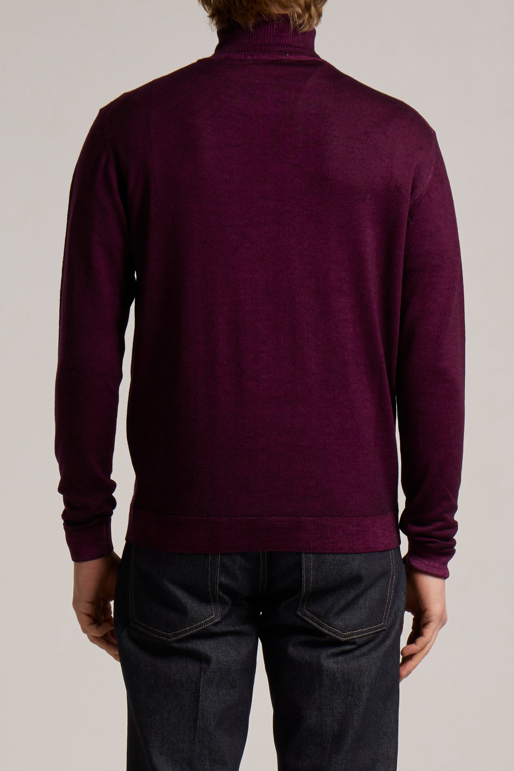 Thin Extrafine Merino's Wool, vintage dyed turtle neck sweater, single jersey with 1x1 ribbed neck, cuffs and waist band.